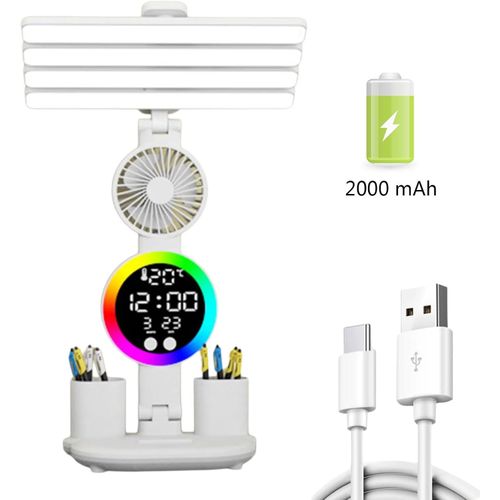 H HNMA HN 접이식 LED 스탠드 램프 눈보호 USB 충전형 데스크 클립 겸용 테이블 핑크 화이트, 흰색