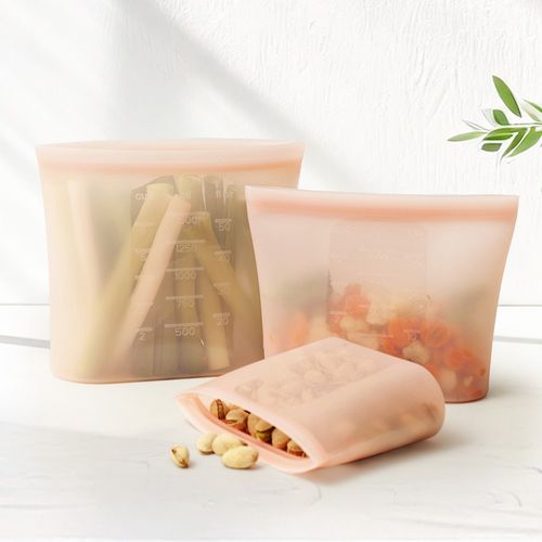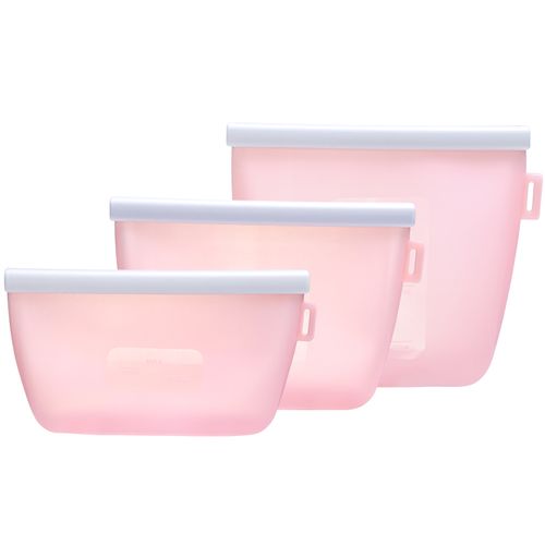 에이치 스토리 실리콘 보관팩 친환경 밀폐 다회용 실리콘봉투 실리콘지퍼백,500ml+1000ml+1500ml,3종 세트, 핑크색, 1세트