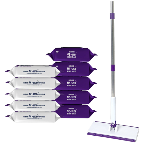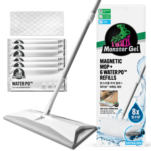 몬스터 초강력 막대걸레 자석밀대 + 마르지 않는 물걸레 청소포 리필 6매입