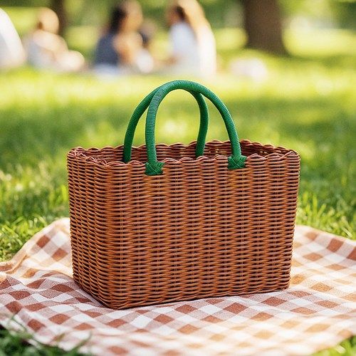 라탄 피크닉 바구니 수납 등나무 핸들 홈카페 감성소품 봄나들이 소품 소형 중형 대형, 1개
