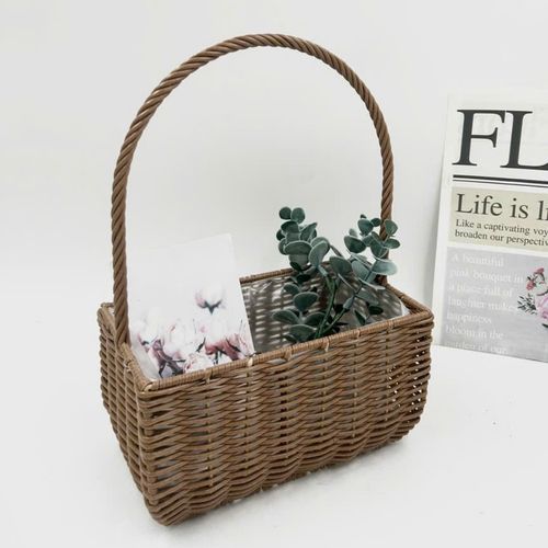 히스홈 라탄 손잡이 직사각형 바구니 꽃꽂이 간식 과일 선물 바스켓