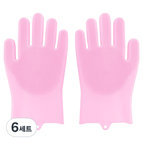 월드크린 다목적 실리콘 수세미 장갑 핑크 양손착용 세트, 2개입, 6세트