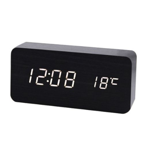 잇츠온 디지털 우드 LED 무소음 탁상시계, 블랙