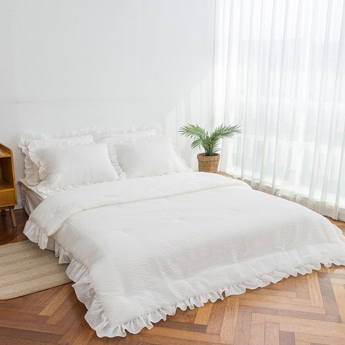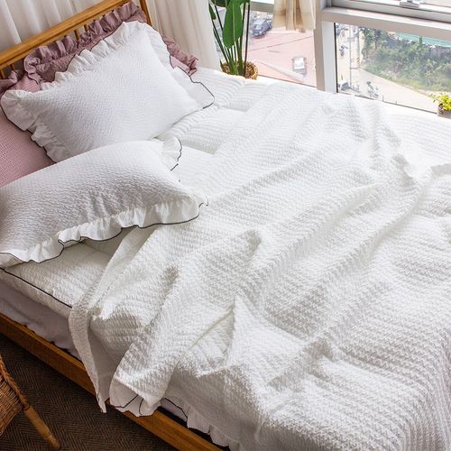 여름 시원한 소재 크리미 뱀부 시어서커 아사 화이트 간절기이불 패드세트 SS Q