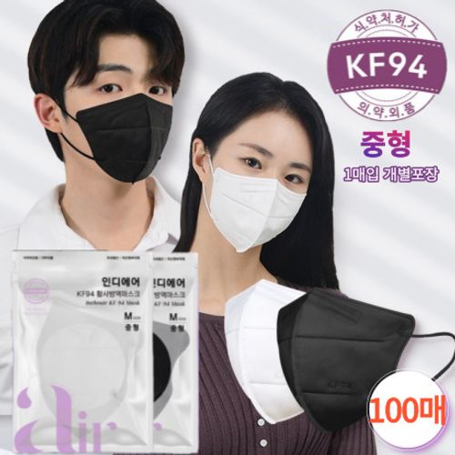 KF94 중형 새부리형 마스크 100매 개별포장 블랙 화이트 초미세먼지차단 황사 귀편한 귀안아픈 세부리형마스크