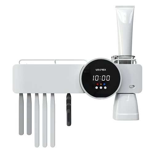유토렉스 디아나 스마트 무선 칫솔 살균기 디지털시계 벽걸이 UV-C 히팅 건조기 소독 양치컵 URT-127CHW