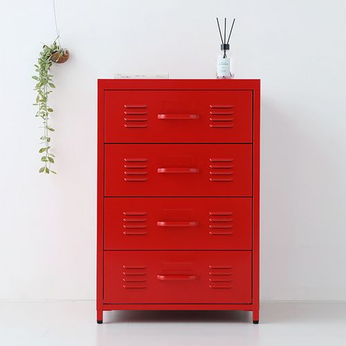 마켓비 MKB 철제서랍장 수납장 4단 550, 레드