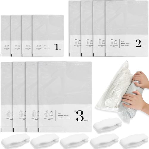 12개입 의류용 진공백 여행용, 32*42cm / 40*60cm / 50*70cm 공간 절약형 진공백, 여행용 압축백 롤링 방식, 재사용 가능 여행용 보관백 롤링 방식 (디지털), 1개입
