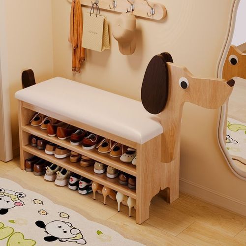 가정용 강아지 원목 벤치 의자 신발장 일체형 신발장 오픈신발선반 벤치의자 원룸 아파트 현관 베란다 신발 수납, 2단, 원목색 80CM