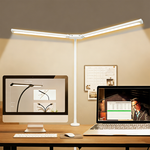 사시한사 더블헤드 접이식 클립형 스탠드 공부 스탠드 시력보호 데스크 램프, 화이트