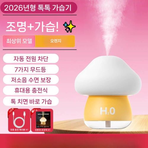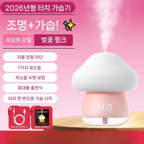 LED 버섯 무드등 수면등 조명 가습기 무선 충전식 터치 미니가습기 사무실 책상 톡톡