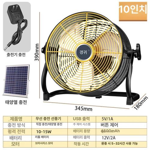 대형 선풍기 야외 패널 휴대용 태양열 16인치 충전식