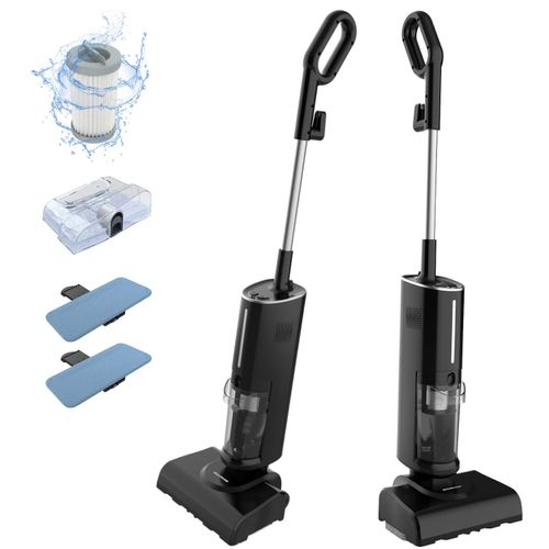 [국내발송] RichMagic 2in1 다기능 스팀 청소기 16000Pa 건습 겸용 진공 청소기 스팀 모포, 블랙
