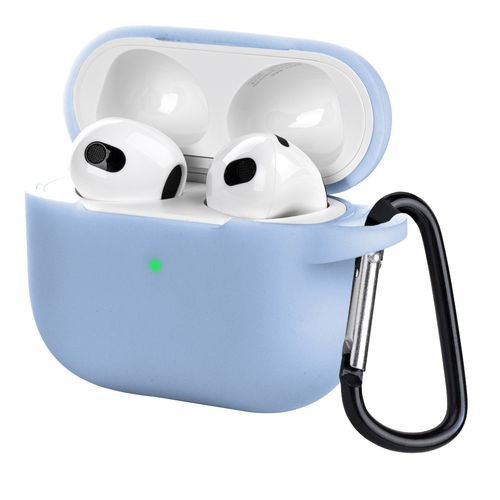 아이몰 에어팟 컬러 실리콘 일체형 케이스 + 카라비너 키링, 에어팟3, 파스텔블루, 1개
