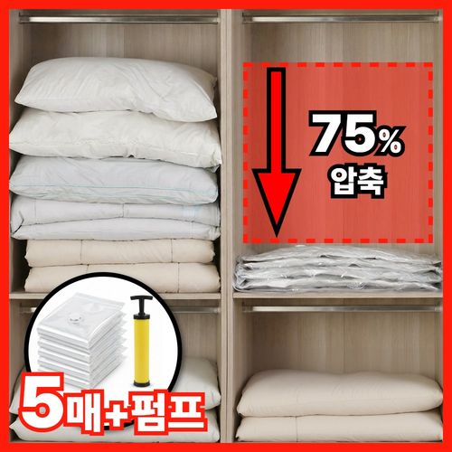 하피도 에어슬림 진공 압축팩 이불용 의류용 여행용 전용펌프, 1세트, 5개입