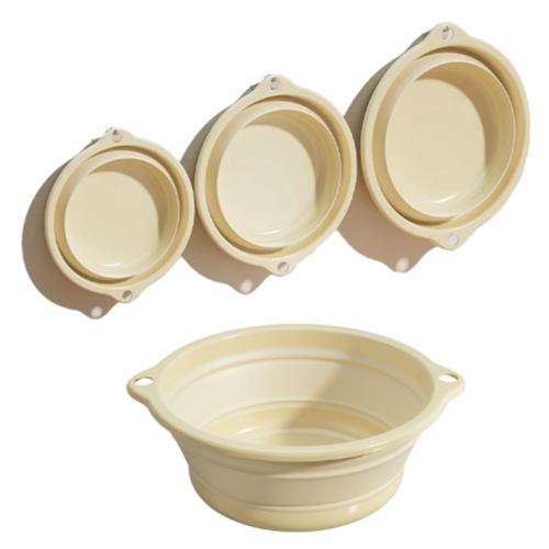 퍼핏 접이식 공간절약 폴딩 대야 세트, 1개, 베이지 소+중+대