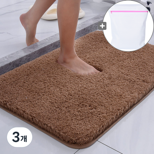 솔하우스 빨아쓰는 욕실 부드러운 발매트 세탁망증정, 3개, 브라운