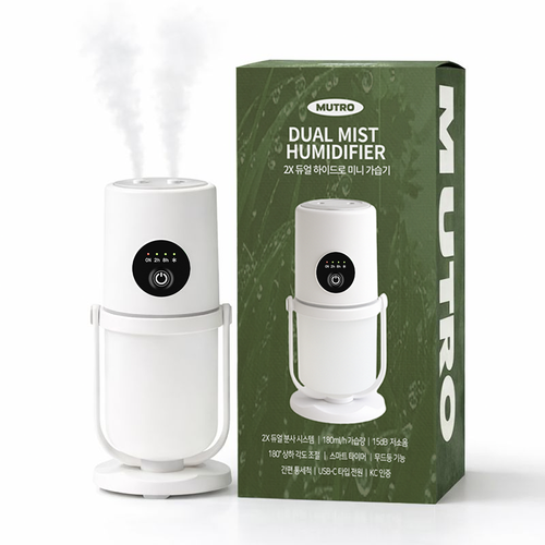 뮤트로 듀얼 미스트 가습기 미니 무선 각도조절 안개분사 휴대용 탁상용, 화이트