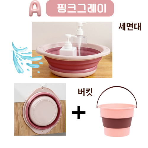 오프투온 접이식 공간 절약 세면대야 + 버킷 세트, A 핑크그레이, 2개