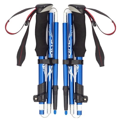 등산 스틱 접이식 알루미늄 합금 길이조절 아웃도어 트레킹 폴, 2개, 블루