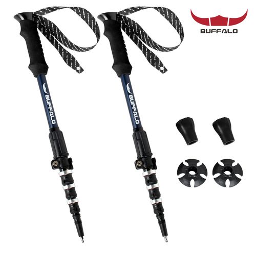 버팔로 써밋엑스 P&P 원터치 등산스틱 2개세트 5단 지팡이 트레킹폴 국내생산, 블루, 1세트