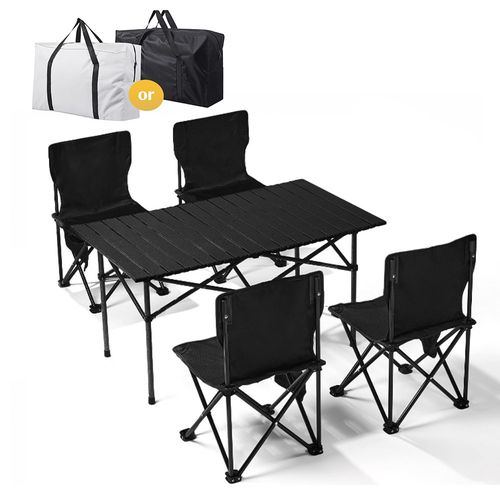 초경량 접이식 알루미늄 캠핑 테이블 의자 5종 세트 , 야외용 피크닉 캠핑 낚시 바베큐 간편 조립 수납가방 포함, 블랙.
