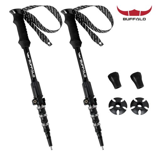 버팔로 써밋엑스 P&P 원터치 등산스틱 2개세트 5단 지팡이 트레킹폴 국내생산, 블랙, 1세트