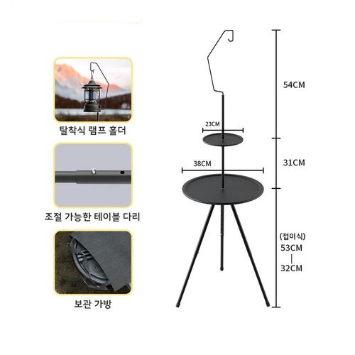 [Triton]아웃도어 야외 캠핑 휴대용 피크닉 테이블 높이 조절 라운드 사이드 원형 테이블 랜턴 걸이 수납가방, black