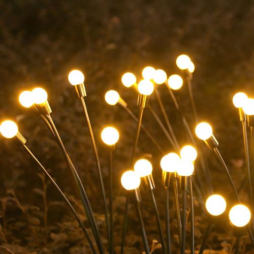 자동충전 LED 태양광 반딧불 잔디 빛 조명 캠핑 야외 방수 랜턴 8구x2P -옐로우