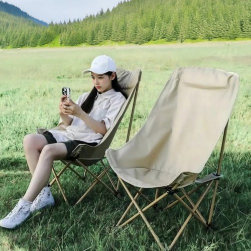 캠프텐버 아웃도어 릴렉스 접이식 캠핑 의자, 2개, 베이지