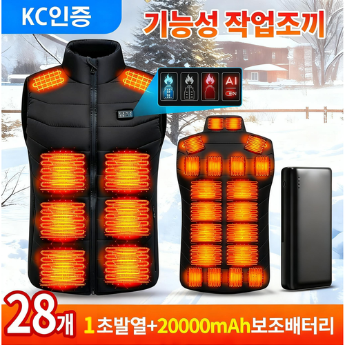 KLIFE 발열조끼 28구역 3단계 방한패딩 작업복 배달 러닝 경량 근무복 usb열선조끼 골프 등산 낚시용+20000mAh 보조배터리