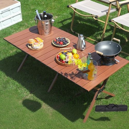 슈퍼레이디 롤테이블 미니 경량 접이식 우드테이블 캠핑 테이블