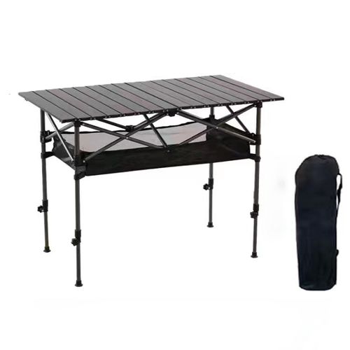 고품질후강판 휴대용 높이 조절 접이식 캠핑 테이블+망태, 블랙