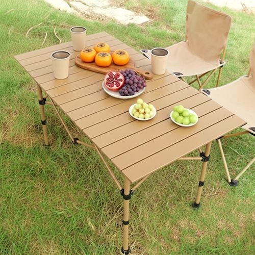 WildHeart 접이식 캠핑테이블 높이조절 경량 롤테이블, 베이지