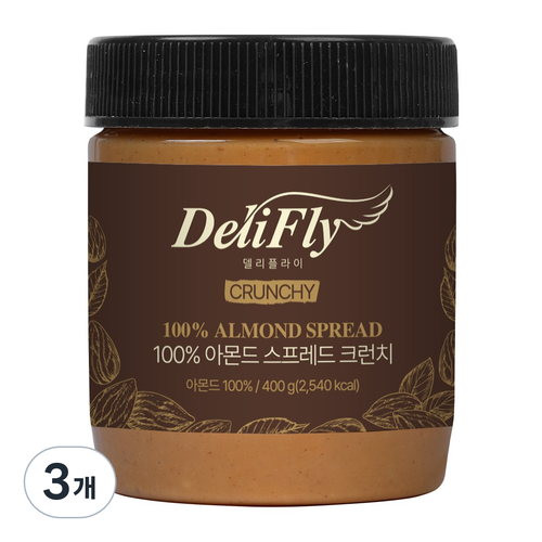 델리플라이 캘리포니아산 순 아몬드 스프레드 100% 크런치 무가당 무첨가, 3개, 400g