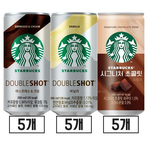 스타벅스 스벅 커피음료 3종 각 5개씩(더블샷에스프레소+바닐라+시그니처초콜릿)