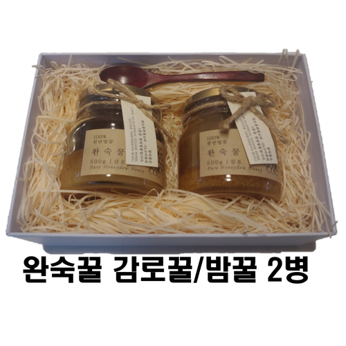 [양구민들레] 토종 완숙꿀 천연벌꿀 100% 2종 감로꿀 500g / 밤꿀 500g 2병 선물세트 포장