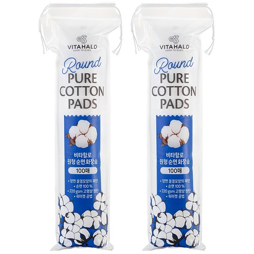 비타할로 무형광 도톰한 원형 순면 화장솜, 100개입, 2개