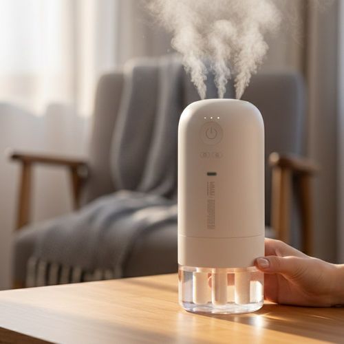 테크만만 무선 차량용 C타입 충전식 저소음 미니 가습기, 화이트