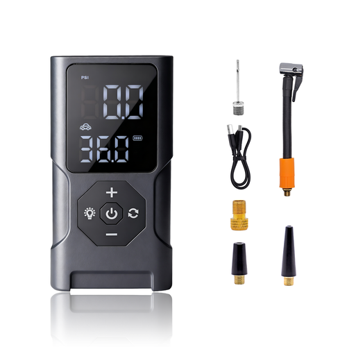 Helloleiboo 휴대용 무선 및 유선 겸용 타이어 공기 주입기(공기압 모니터링/USB 보조 배터리/LED 조명), 검은색, 1개