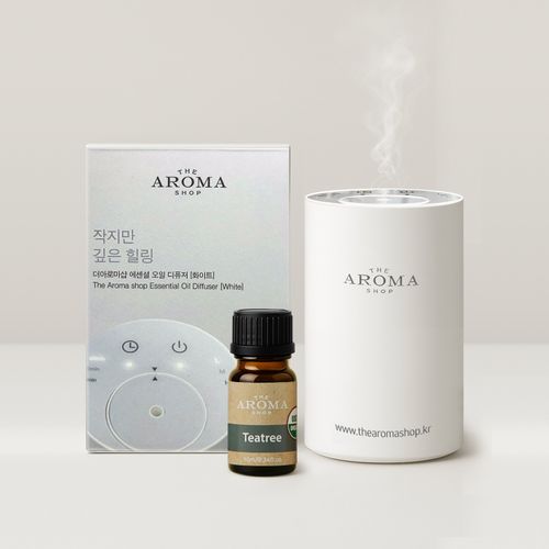 [전자 디퓨저+에센셜오일 1종] 네뷸라이징 실내 차량용 방향제 / C타입 USB 충전식 무선 아로마 디퓨저 세트 / 자동분사 더아로마샵, 1개, 10ml, 전자디퓨저(화이트)+오가닉 티트리 10ml