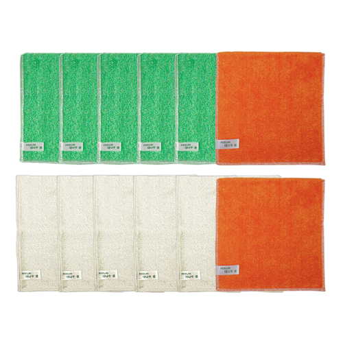 필하이 세제가 필요없는 대나무셀 행주 천연향균 수세미, 혼합(화이트5개, 그린5개, 오렌지2개) 12개, 1세트, 1개