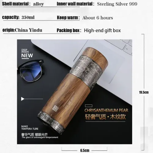 스테인레스 스틸 텀블러 보온병 여행용 커피 머그잔 내부 벽 스털링 실버 S999 350ml