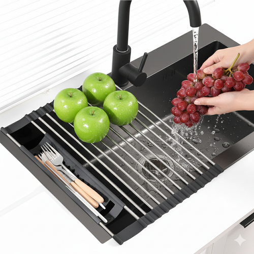 리딜 싱크대 건조대 접이식 물빠짐 매트 스테인리스 실리콘 컵 그릇 설거지 식기건조대, 1개, 블랙, 1단