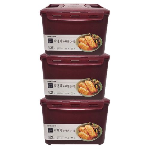 락앤락 대형 김치통 12L 3세트 (15포기) 김장 보관용기 밀폐용기 반찬통 배추 갓김치 열무 깍두기 파김치, 3세트