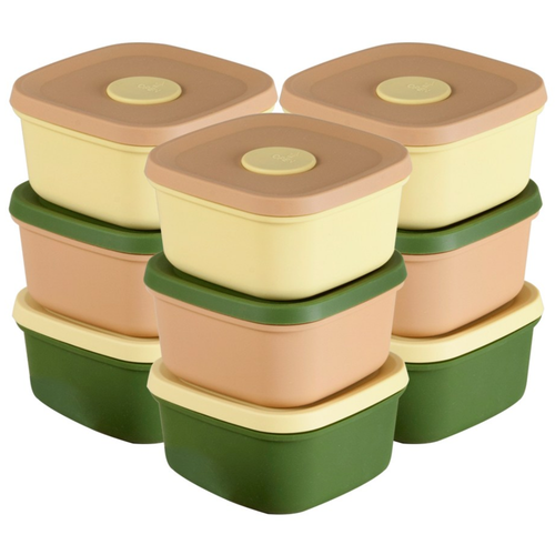 국산 실리콘밥팩 냉동밥보관용기 전자레인지 밀폐 소분용기 300ml 9팩, 그린+피치+버터, 9개