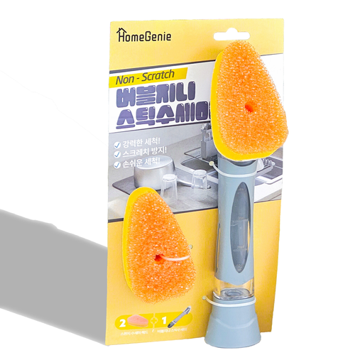 버블지니 스크럽 스틱수세미 스크래치 없는 손잡이 수세미, 1개, 1세트