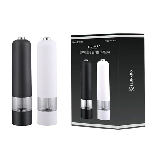 1+1 엘루나로 자동 전동 소금 후추 그라인더, 1세트, 블랙+화이트, 80ml