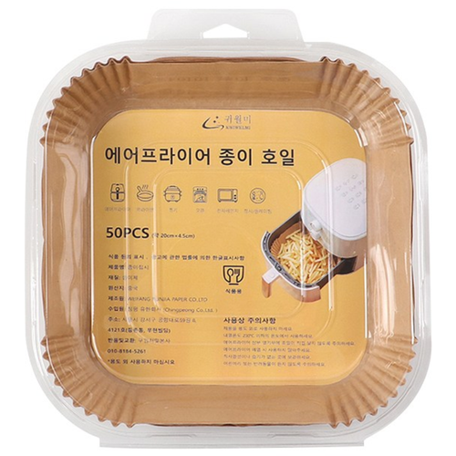 에어프라이어 종이호일 일회용 기름흡수 종이주방용기름종이 튀김방지 시트, 50개, 1개, 20cm