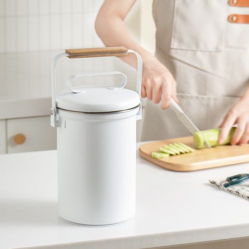 FASEN 음식물 쓰레기통 다기능 304 스텐 가정용 주방 냄새차단 3L 대용량 탁상용 쓰레기통, 1개, 크림 화이트